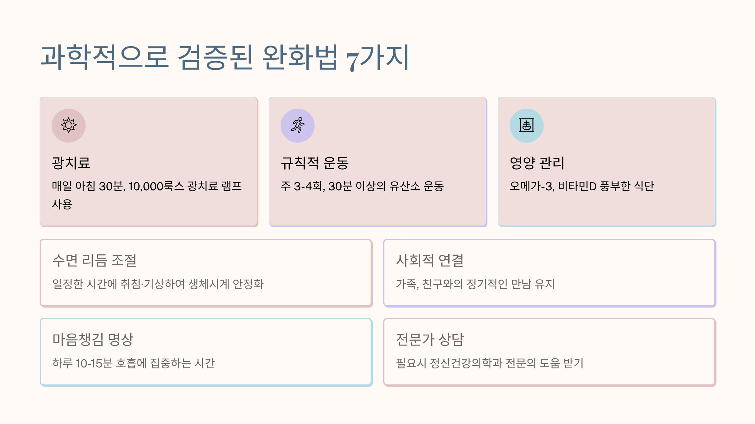 🌞 과학적으로 검증된 완화법 7가지