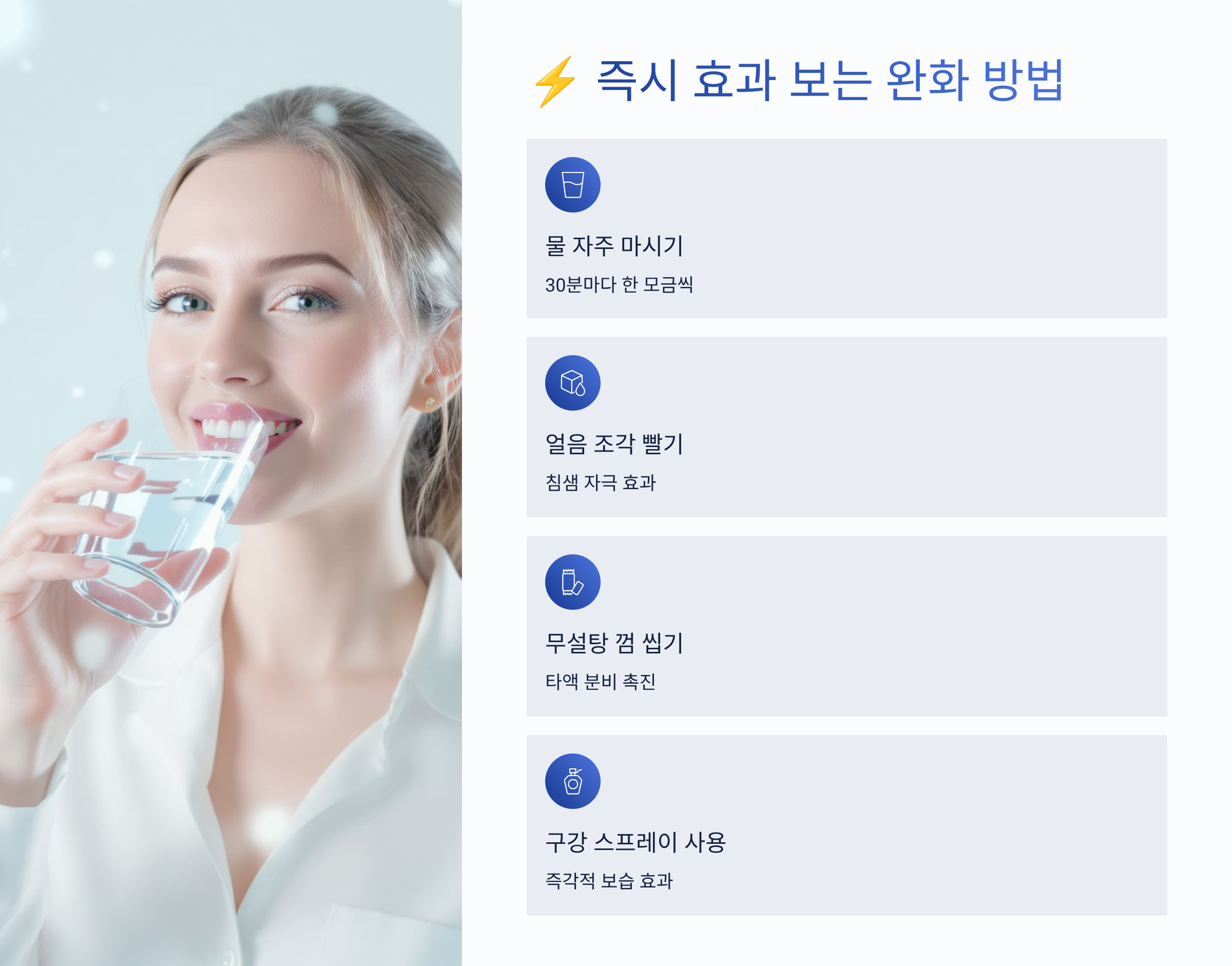 구강 건조증은 단순한 불편함을 넘어 충치, 잇몸 질환, 구취 등 다양한 구강 문제로 이어질 수 있어요. 침은 우리 입안의 천연 보호막 역할을 하거든요. 오늘은 구강 건조증을 효과적으로 완화하는 검증된 방법들을 자세히 알려드릴게요. 집에서 쉽게 따라 할 수 있는 방법부터 전문적인 치료까지 모두 다뤄볼 예정이에요.