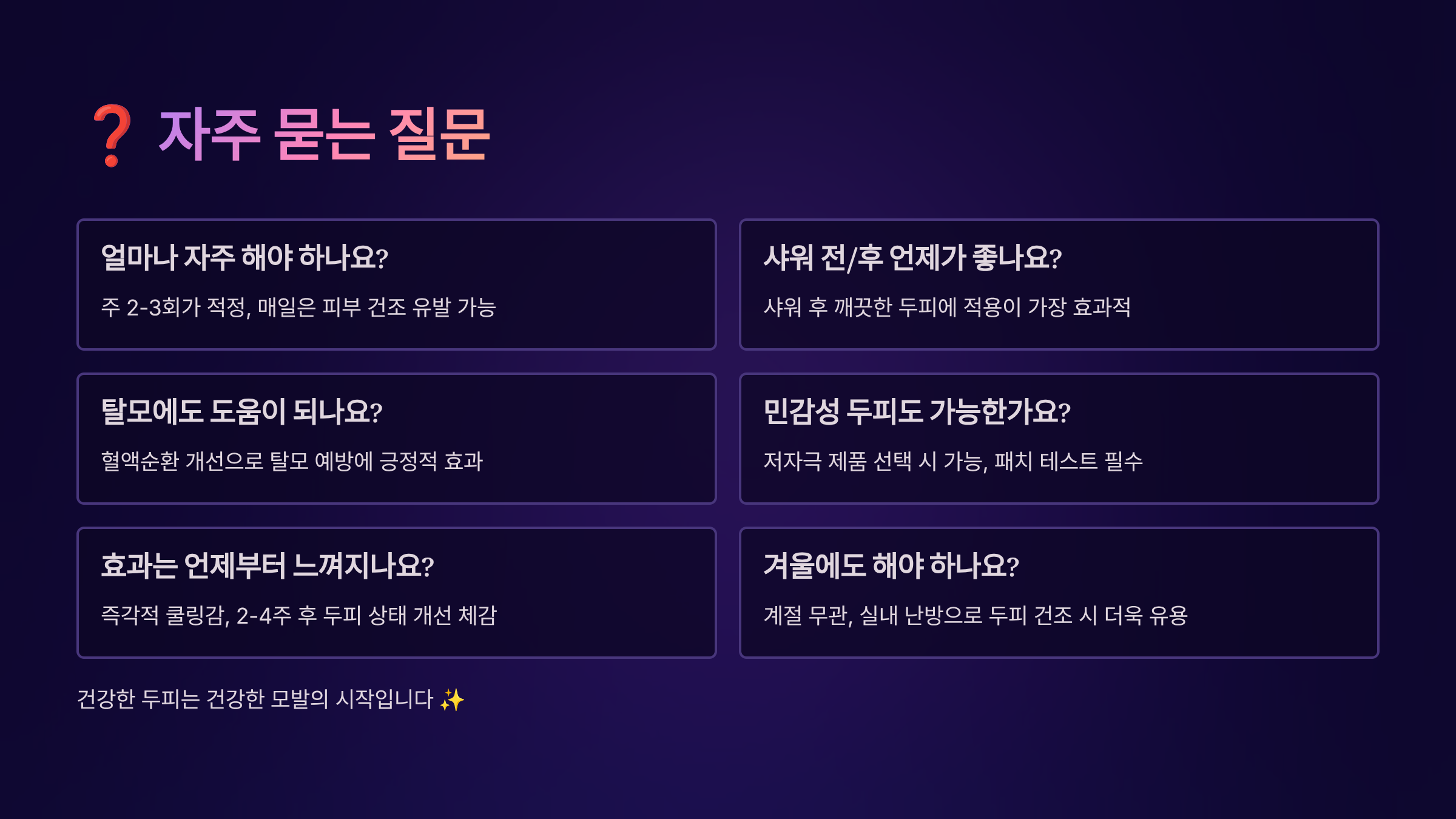 Q1. 두피 쿨링 마사지는 얼마나 자주 해야 효과가 있나요?