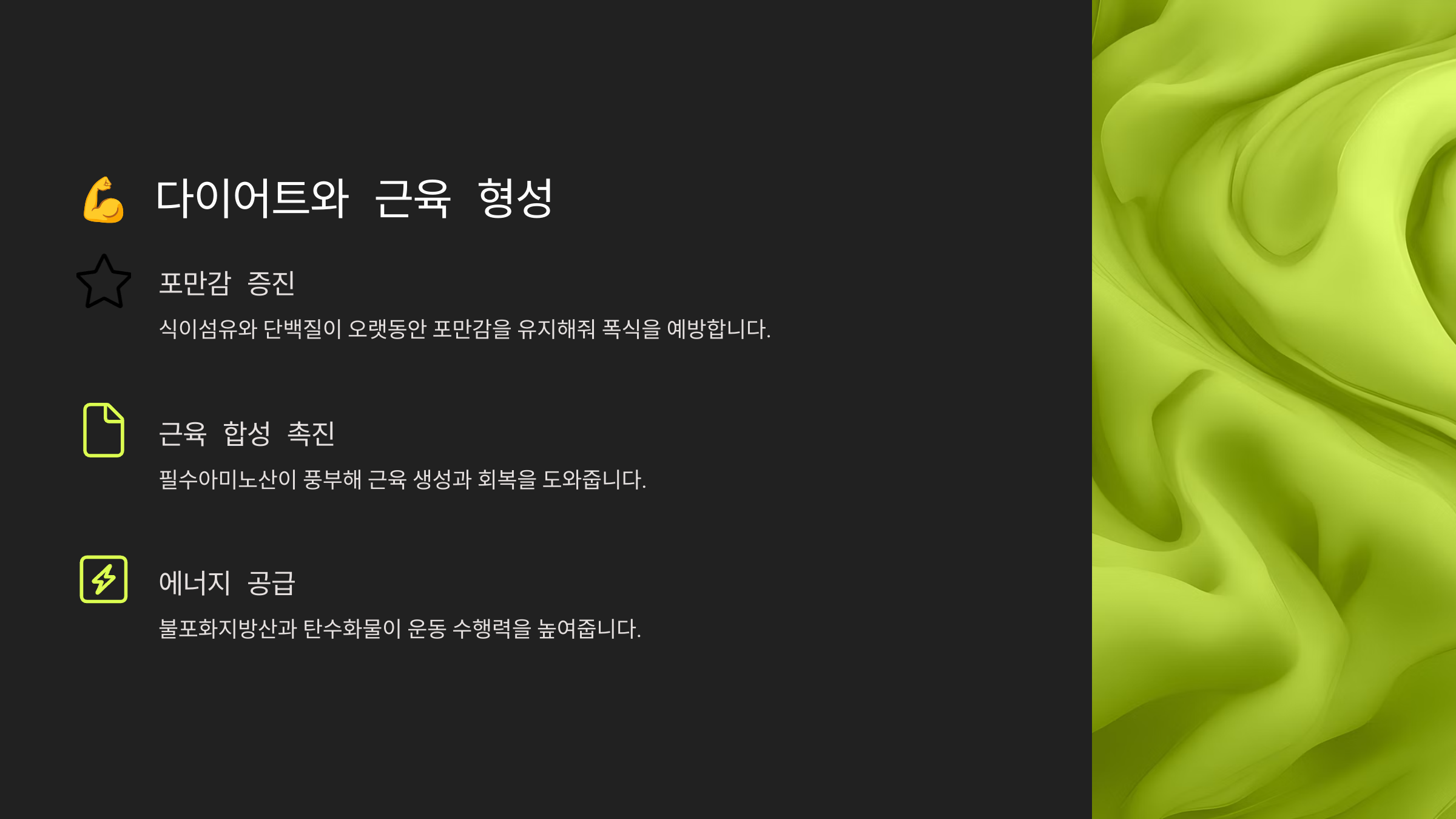 | 섭취 시간 | 오전, 운동 전후 | 취침 전 과다섭취 주의 |