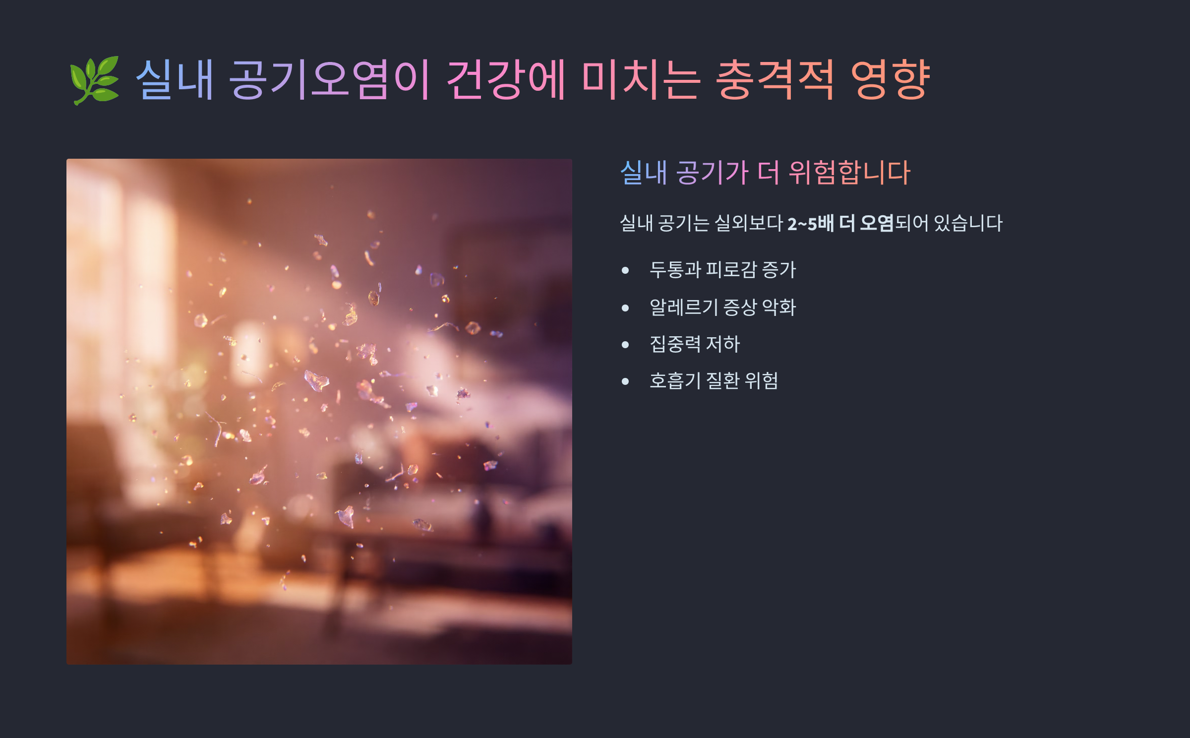 🌿 실내 공기오염이 건강에 미치는 충격적 영향