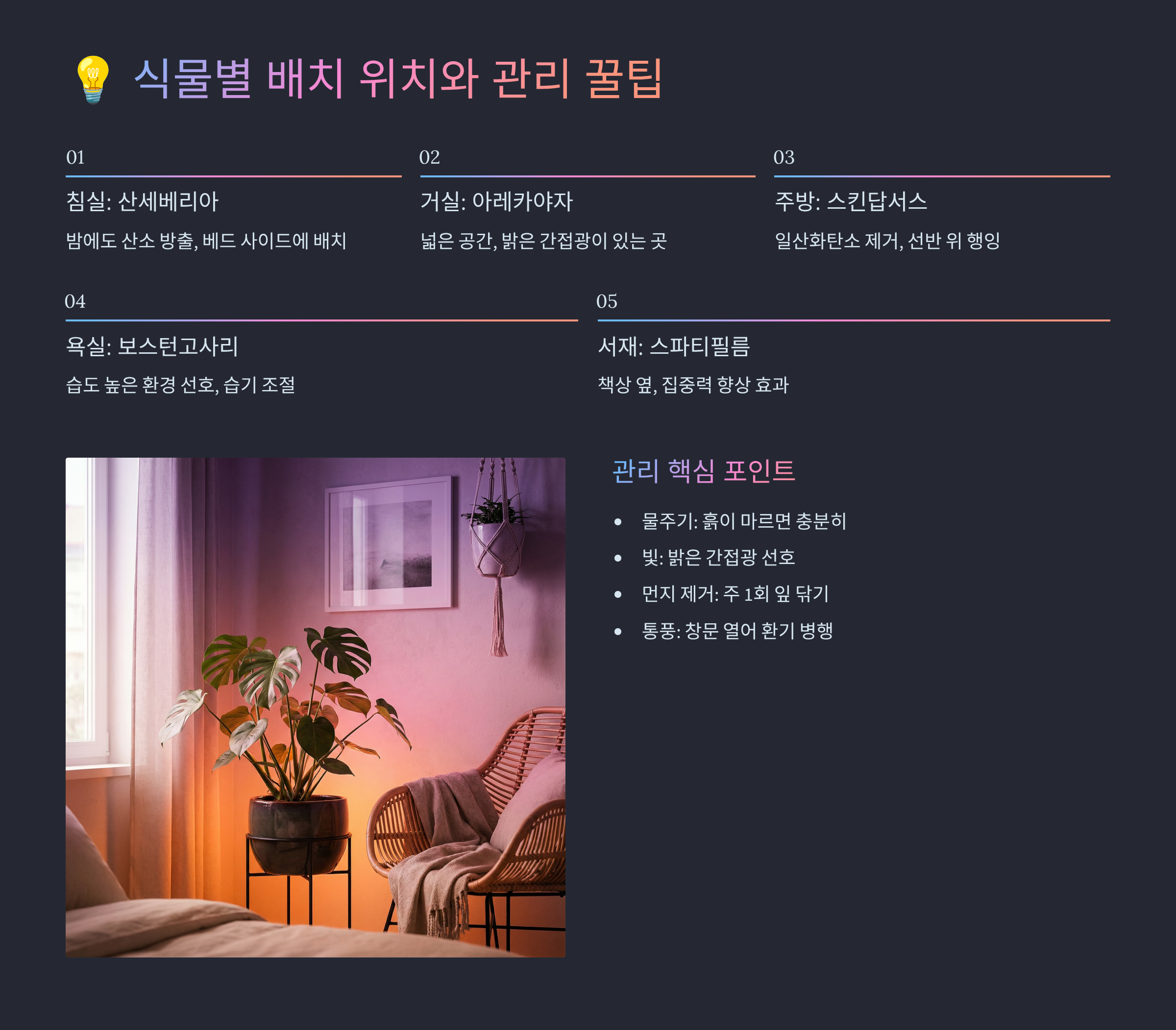 💡 식물별 배치 위치와 관리 꿀팁