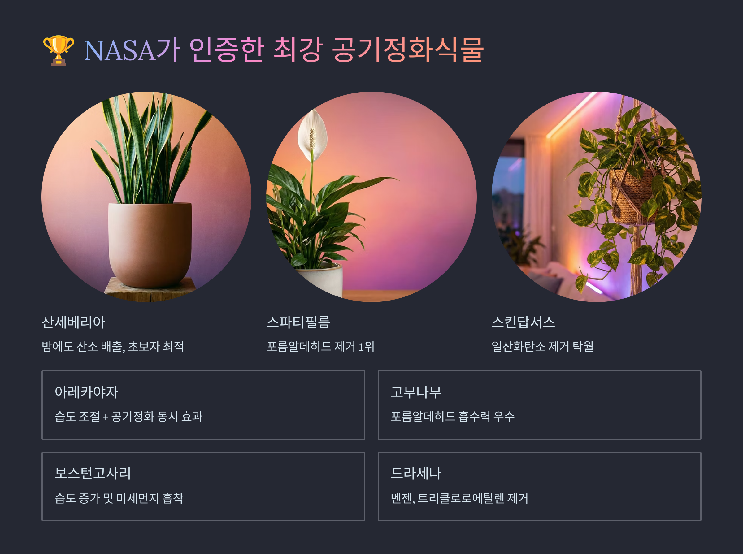 🌱 NASA 인증 공기정화식물 효능 비교