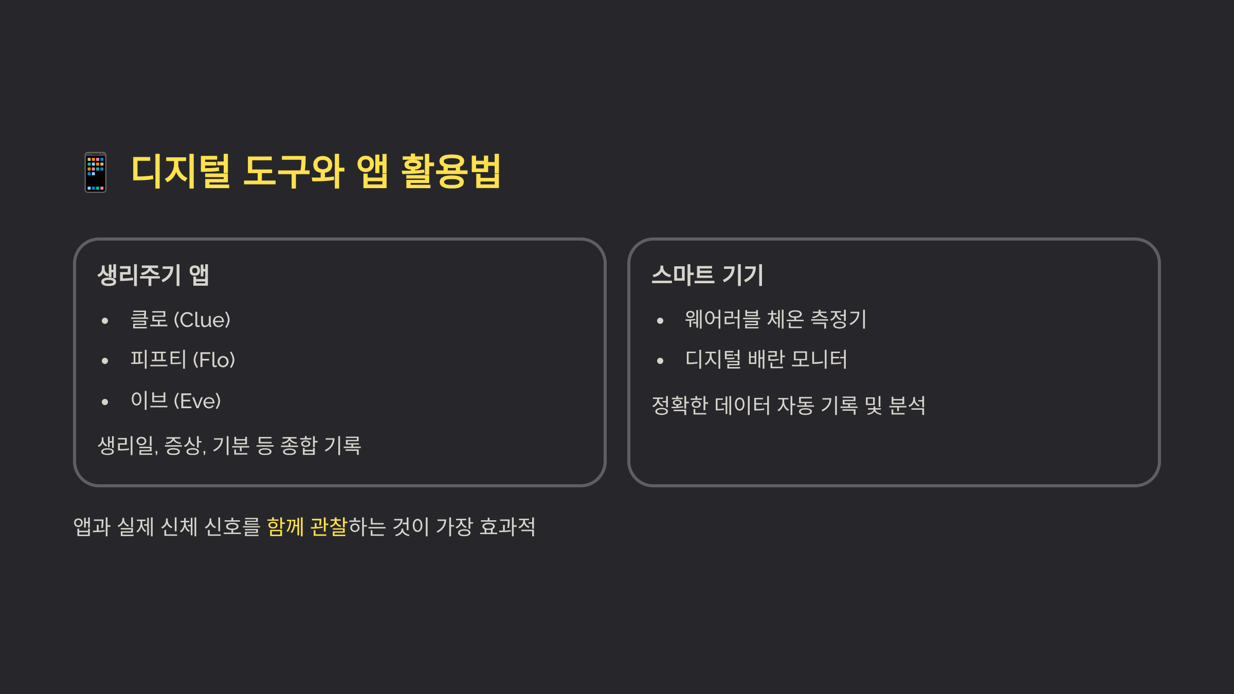 웨어러블 기기와 연동되는 앱들도 인기예요. Ava 팔찌, Tempdrop, OvuSense 같은 기기들은 밤새 체온, 심박수, 호흡수 등을 자동으로 측정해요. 아침에 일어나서 체온을 재는 번거로움 없이 정확한 데이터를 수집할 수 있죠. 특히 교대 근무자나 불규칙한 생활 패턴을 가진 사람들에게 유용해요. 가격은 20-40만 원대로 비싸지만, 정확도가 높고 편리해요.
