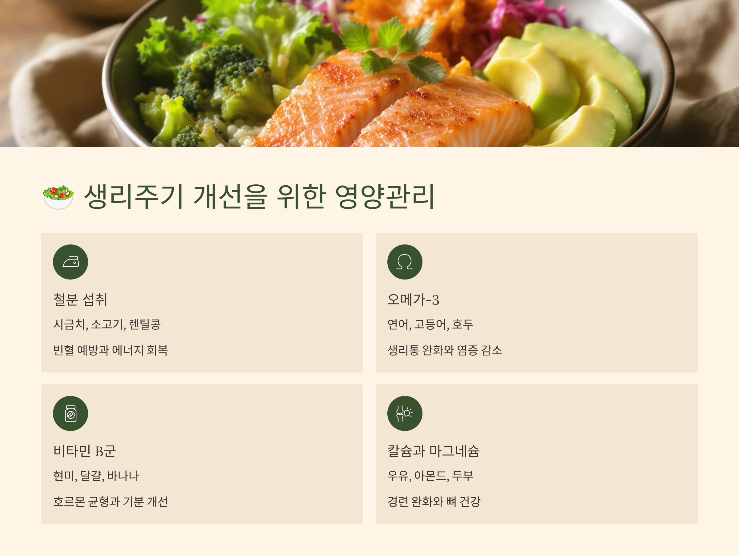 | 생리 단계 | 필요 영양소 | 추천 식품 |