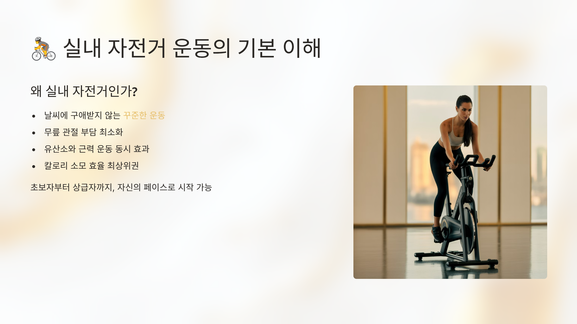 실내 자전거 운동의 역사는 1990년대 초반 미국에서 시작된 스피닝 클래스로 거슬러 올라가요. 조니 G라는 사이클리스트가 실내에서도 야외 사이클링과 같은 효과를 얻기 위해 개발한 운동법이 전 세계로 퍼지게 되었답니다. 현재는 홈트레이닝의 필수 아이템으로 자리 잡았어요. 🚲