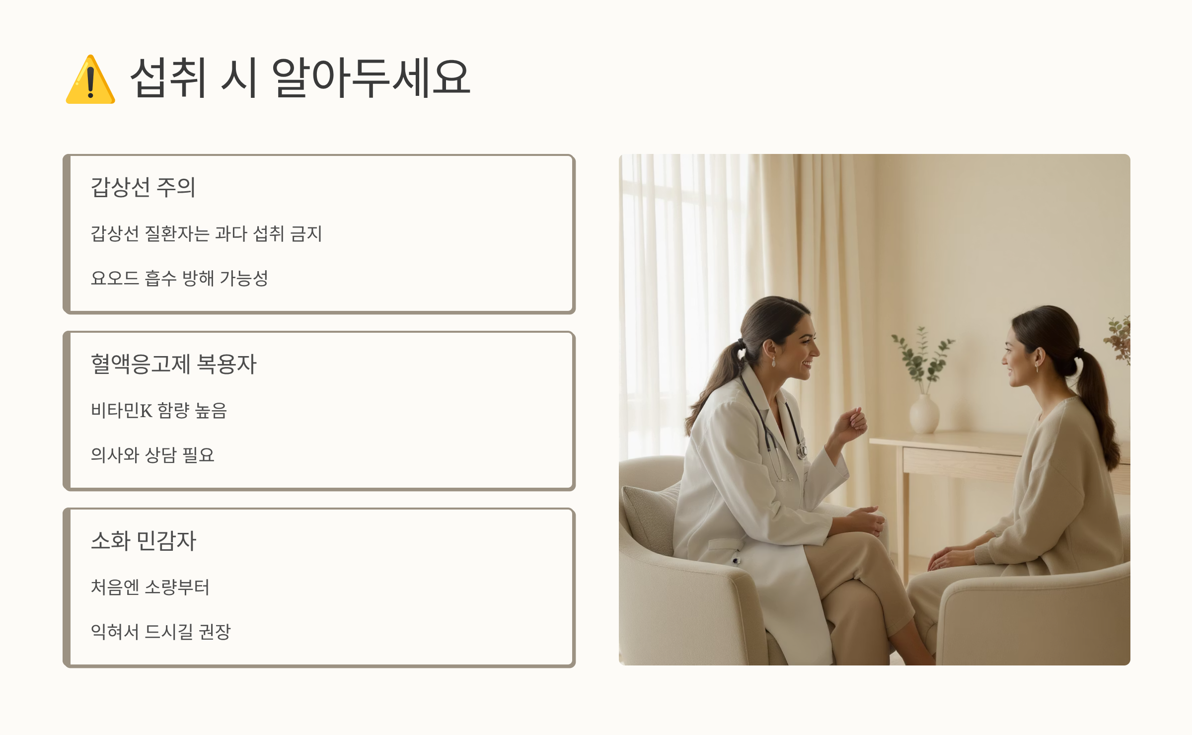 혈액 희석제를 복용 중인 분들도 조심해야 해요. 양배추에 풍부한 비타민K가 혈액 응고 작용을 하기 때문에 약효를 떨어뜨릴 수 있어요. 와파린 같은 약을 드시는 분들은 양배추 섭취량을 일정하게 유지하는 게 중요해요. 갑자기 많이 먹거나 끊으면 약효에 영향을 줄 수 있답니다. 담당 의사와 꼭 상의하세요! 💊