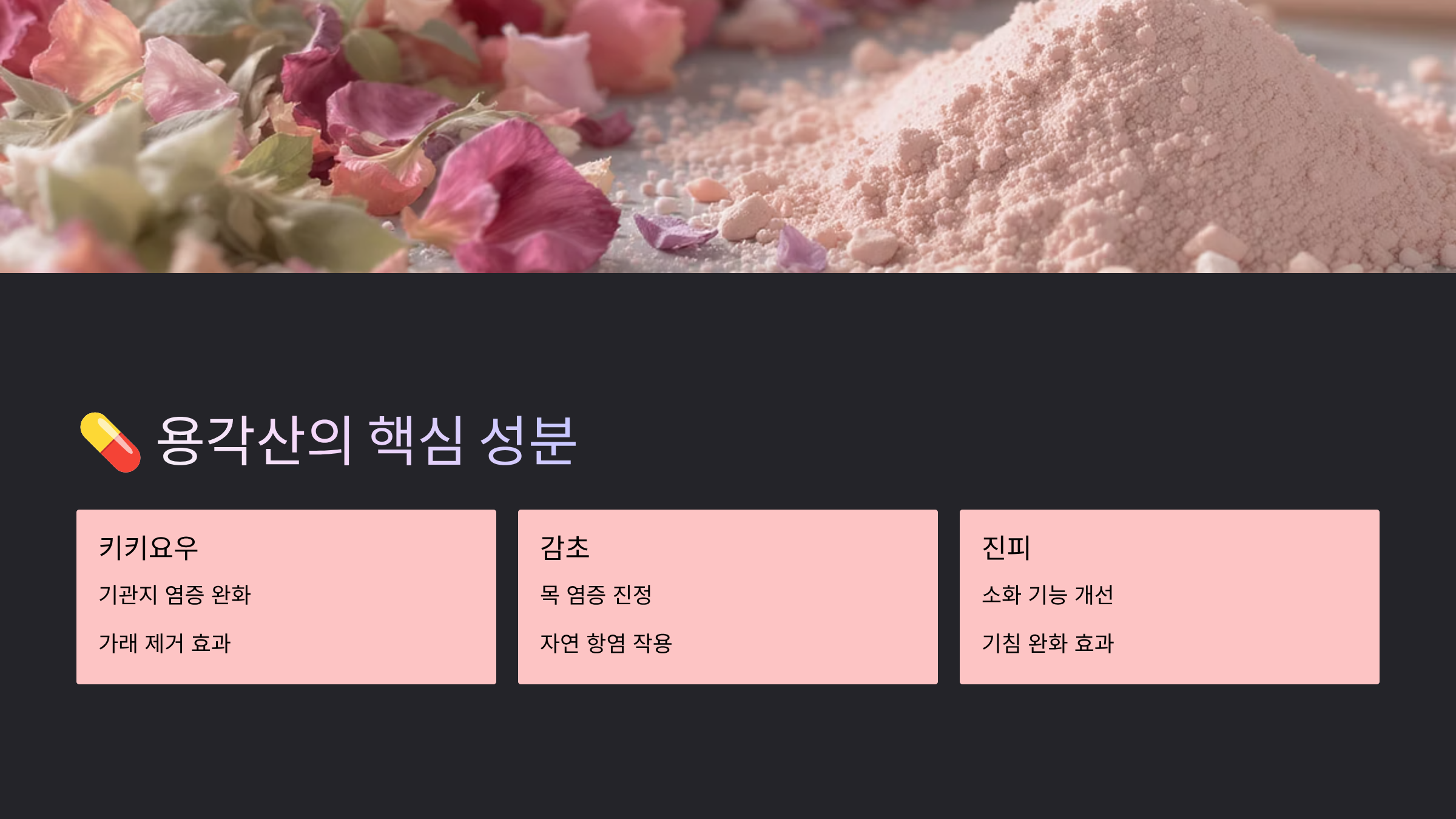 🌿 용각산 성분별 효능 비교표