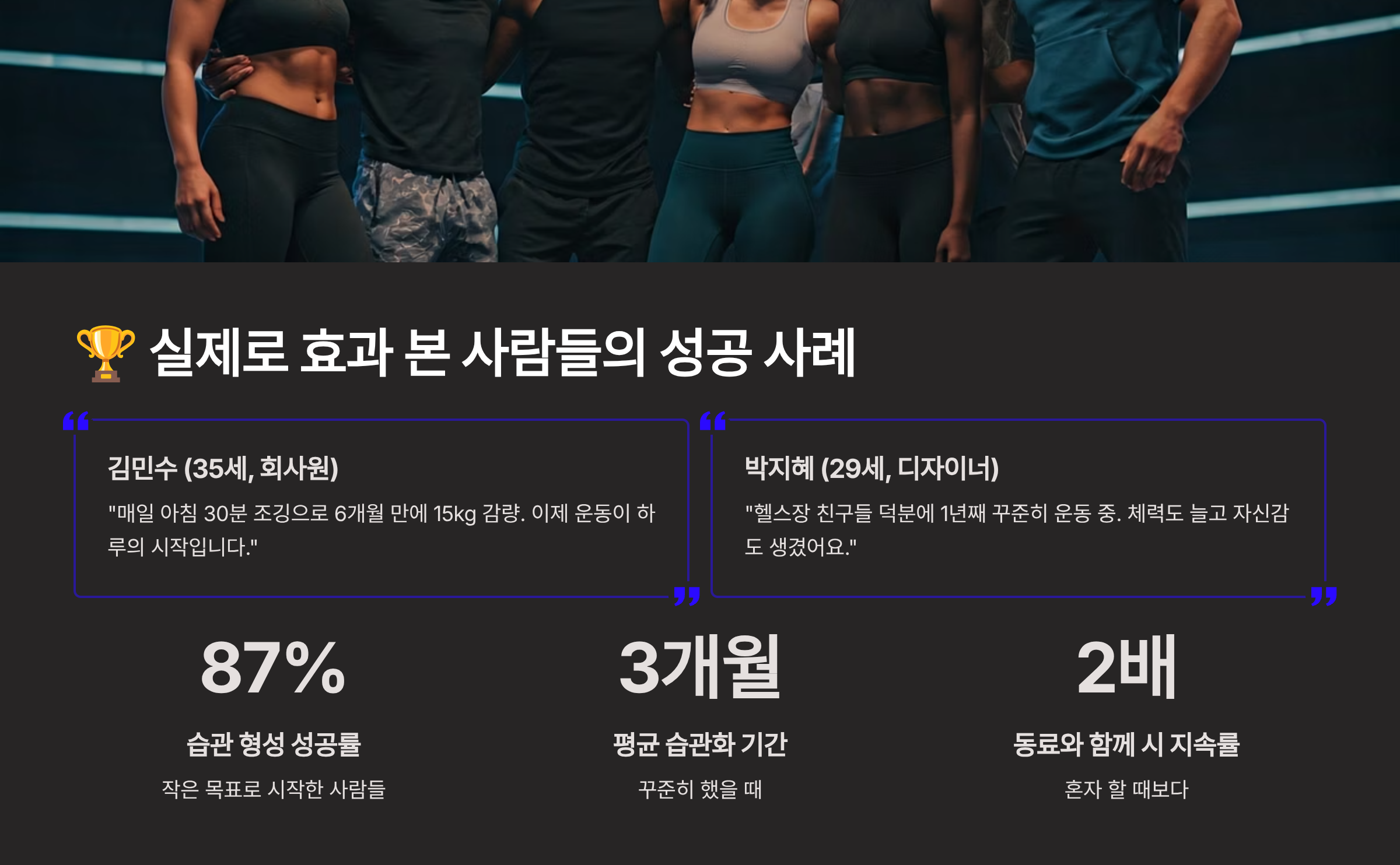 | 김민수(35세) | 2분 법칙 | 6개월간 10kg 감량 |