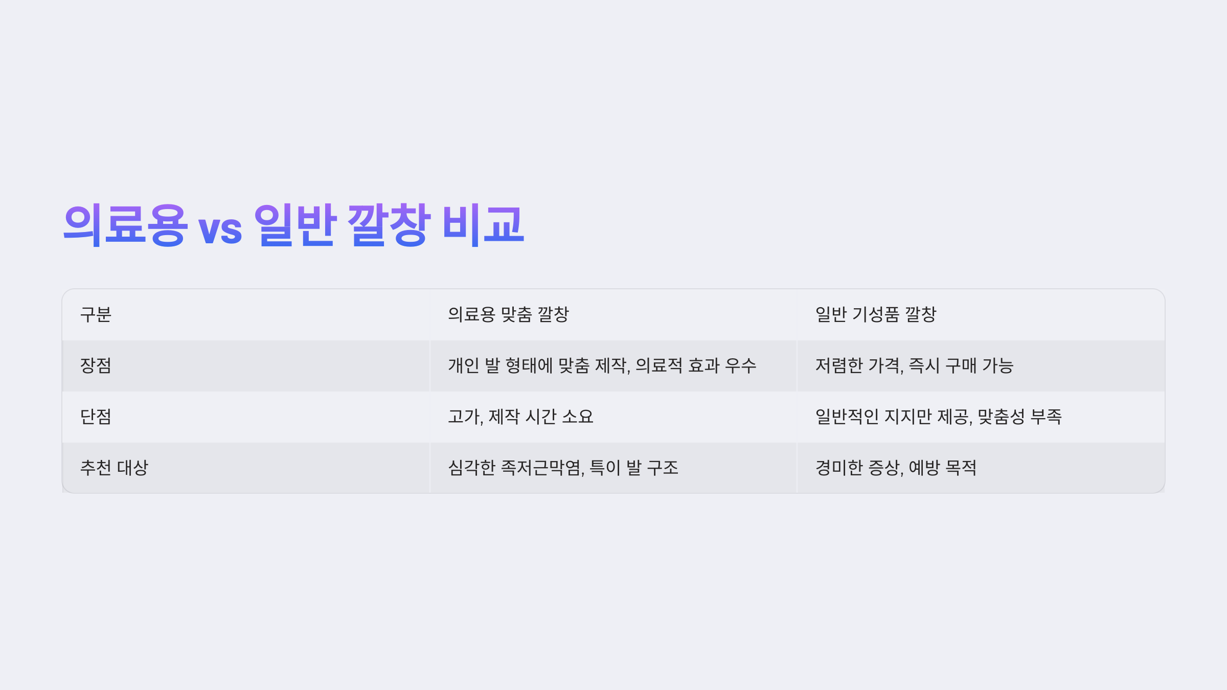 | 구분 | 의료용 깔창 | 일반 깔창 |
