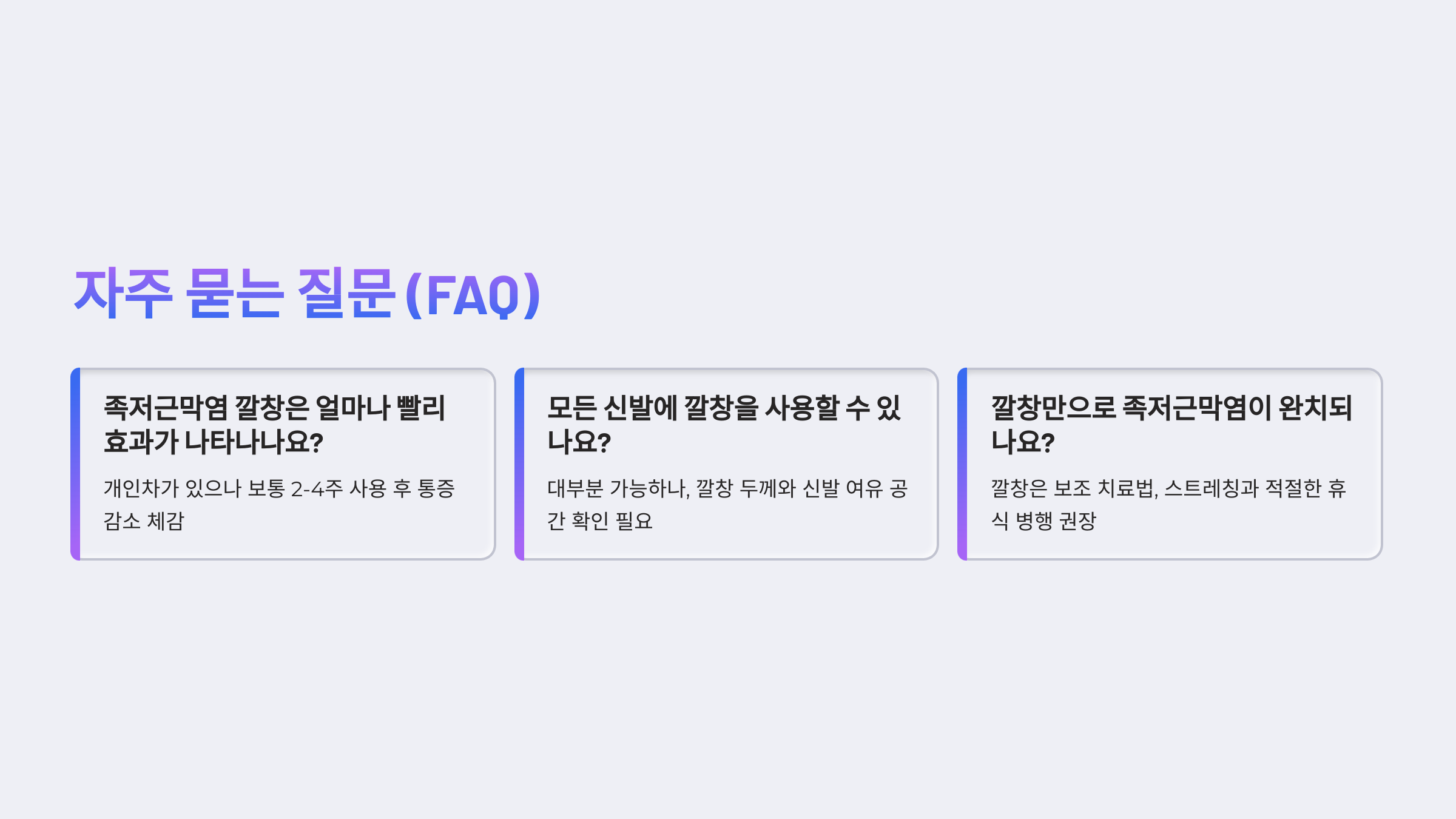 Q1. 족저근막염 깔창은 얼마나 오래 착용해야 효과를 볼 수 있나요?