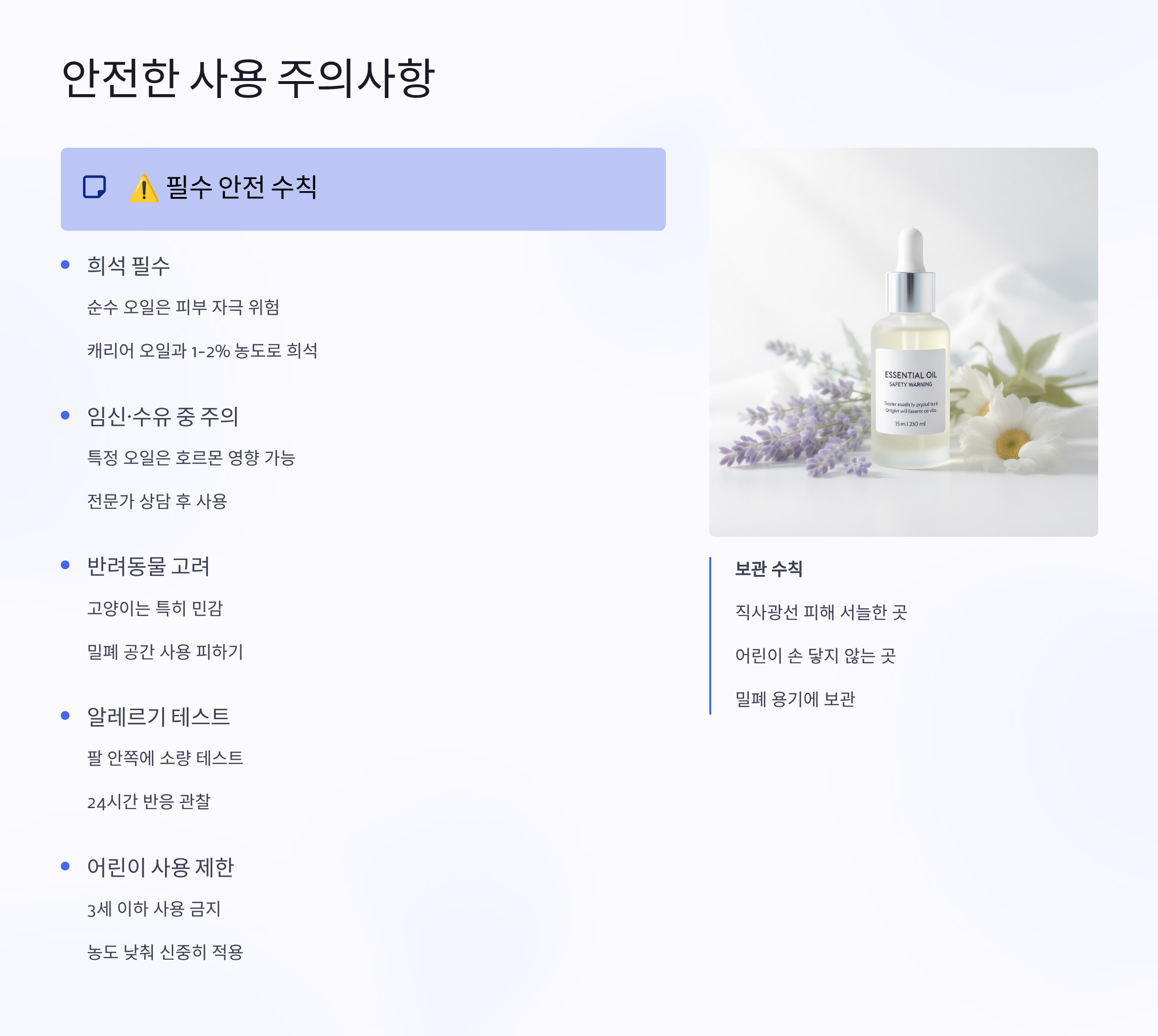 ⚠️ 오일별 주의사항 체크리스트