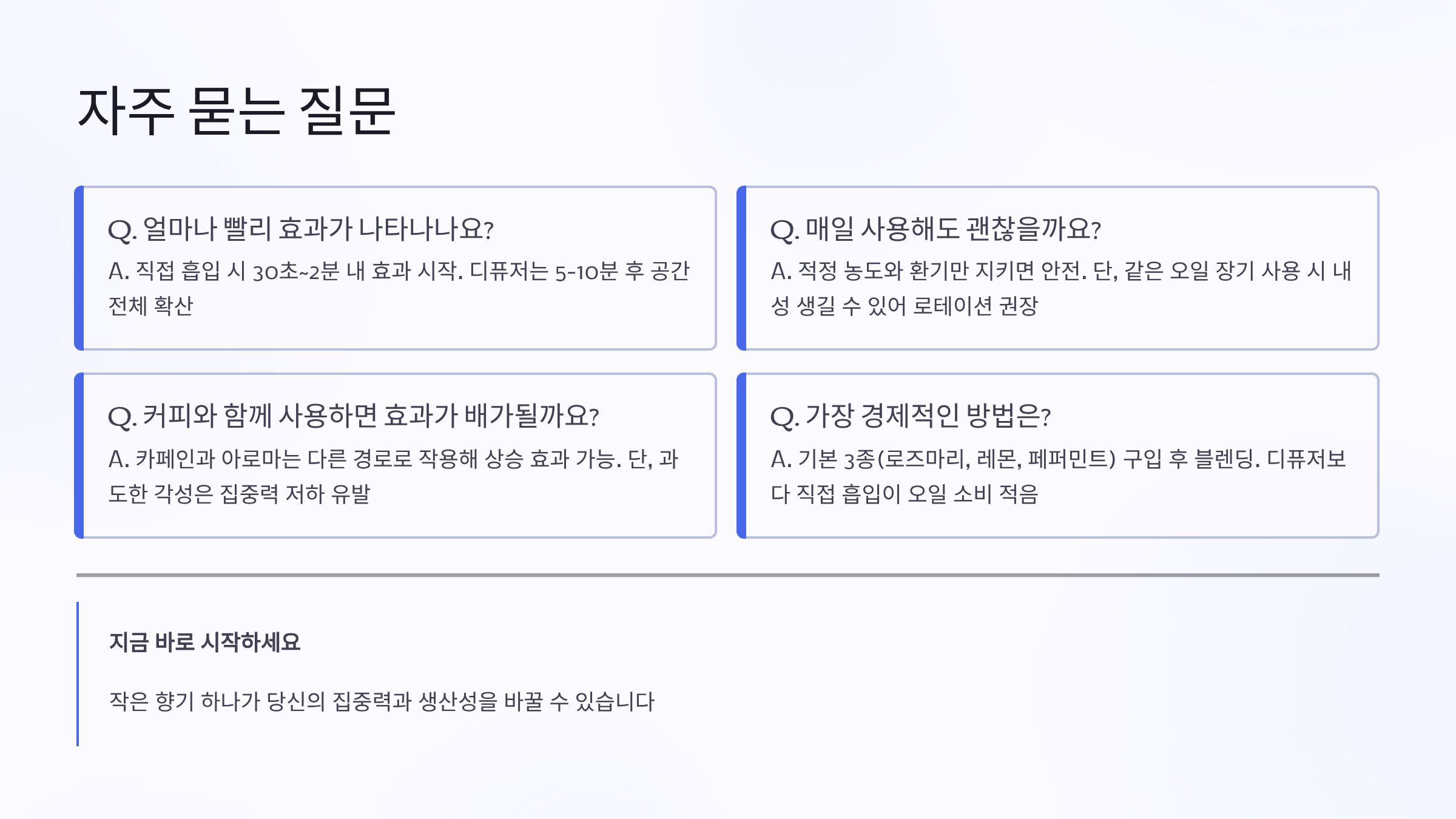 Q1. 아로마 오일 효과는 얼마나 지속되나요?