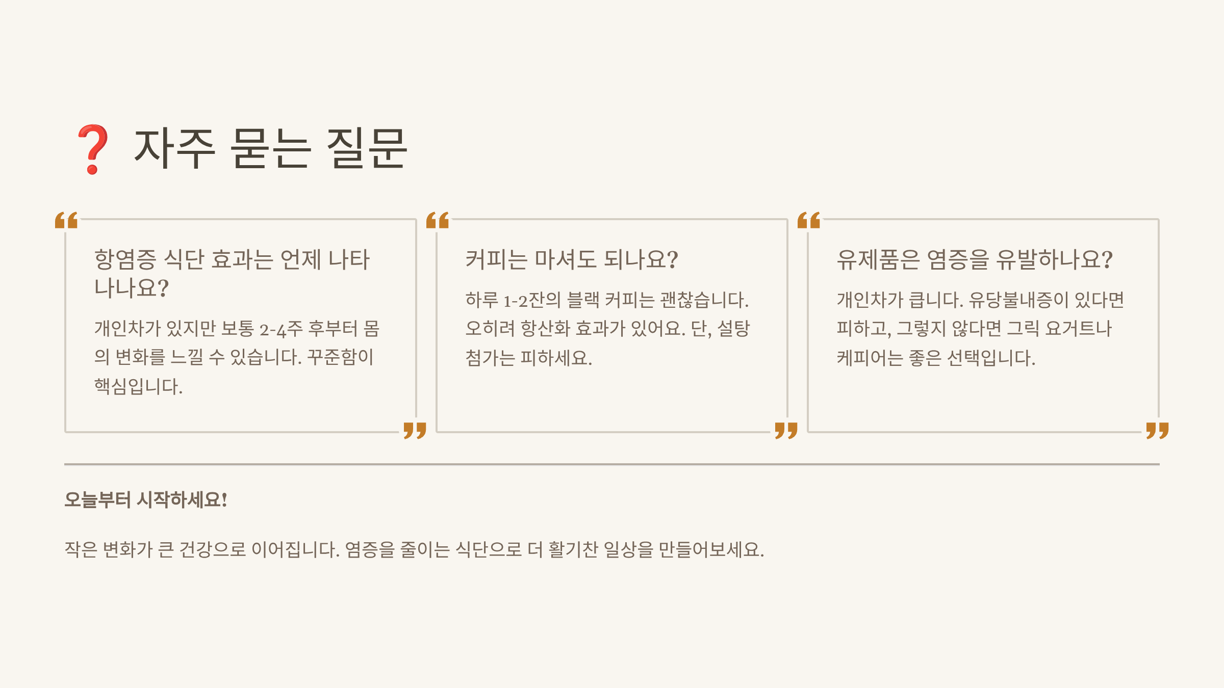 Q1. 항염증 식단을 시작하면 언제부터 효과를 볼 수 있나요?