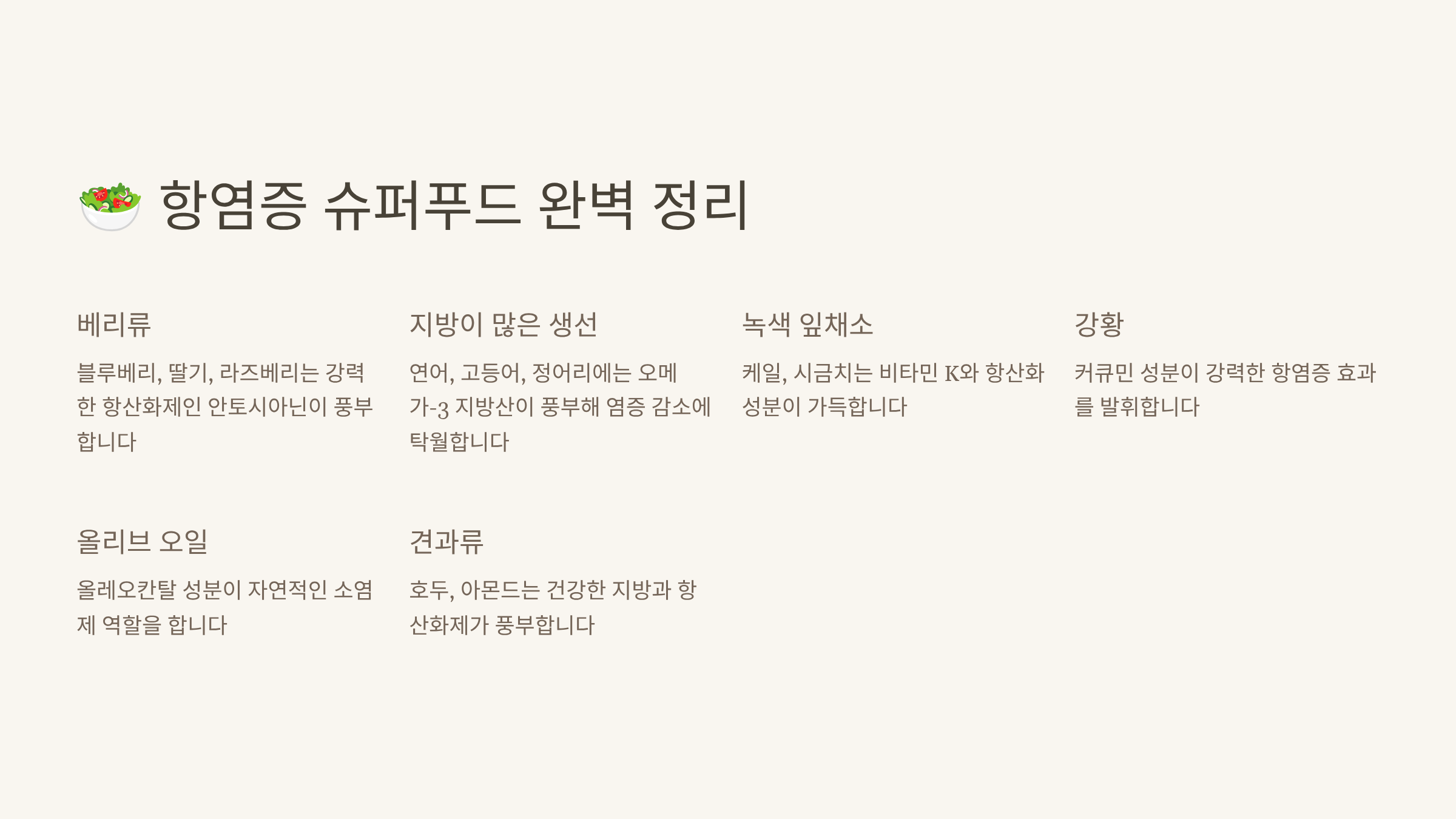🥗 항염증 슈퍼푸드 완벽 정리