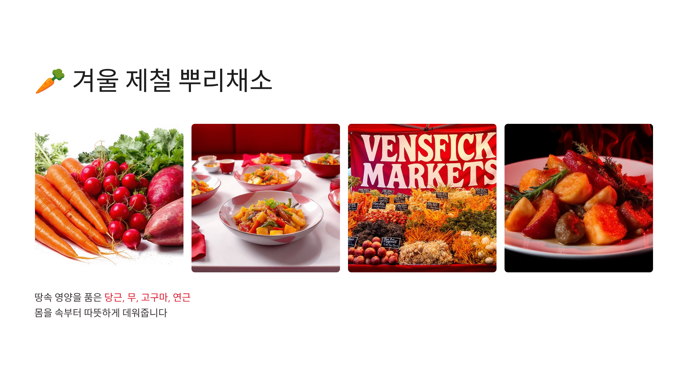 비트는 질산염이 풍부해서 혈관을 확장시키고 혈류를 증가시켜 체온을 높여줘요. 비트 주스를 마시거나 비트 수프를 먹으면 얼굴이 붉어지면서 몸이 따뜻해지는 걸 느낄 수 있어요. 러시아의 전통 요리인 보르시에도 비트가 주재료로 들어간답니다. 🥕