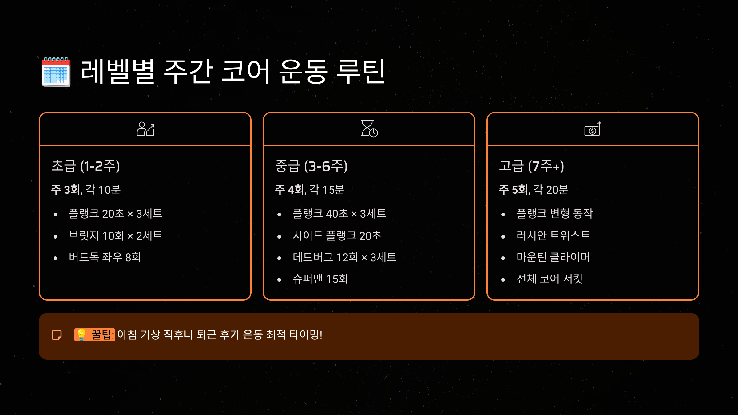 🗓️ 레벨별 주간 코어 운동 루틴
