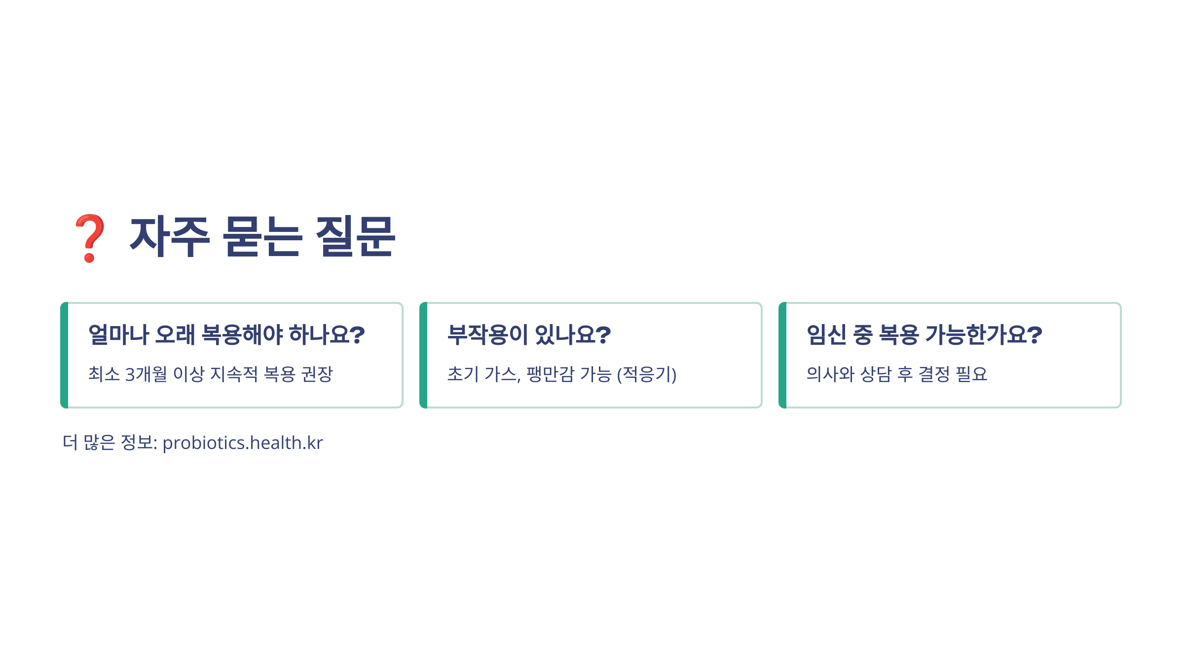 면책조항: 이 글은 일반적인 건강 정보를 제공하는 것으로, 의학적 조언을 대체하지 않습니다. 개인의 건강 상태는 다를 수 있으므로, 프로바이오틱스 복용 전 반드시 의료 전문가와 상담하시기 바랍니다. 특히 기저질환이 있거나 약물을 복용 중인 경우, 임신 중이거나 수유 중인 경우에는 더욱 주의가 필요합니다.