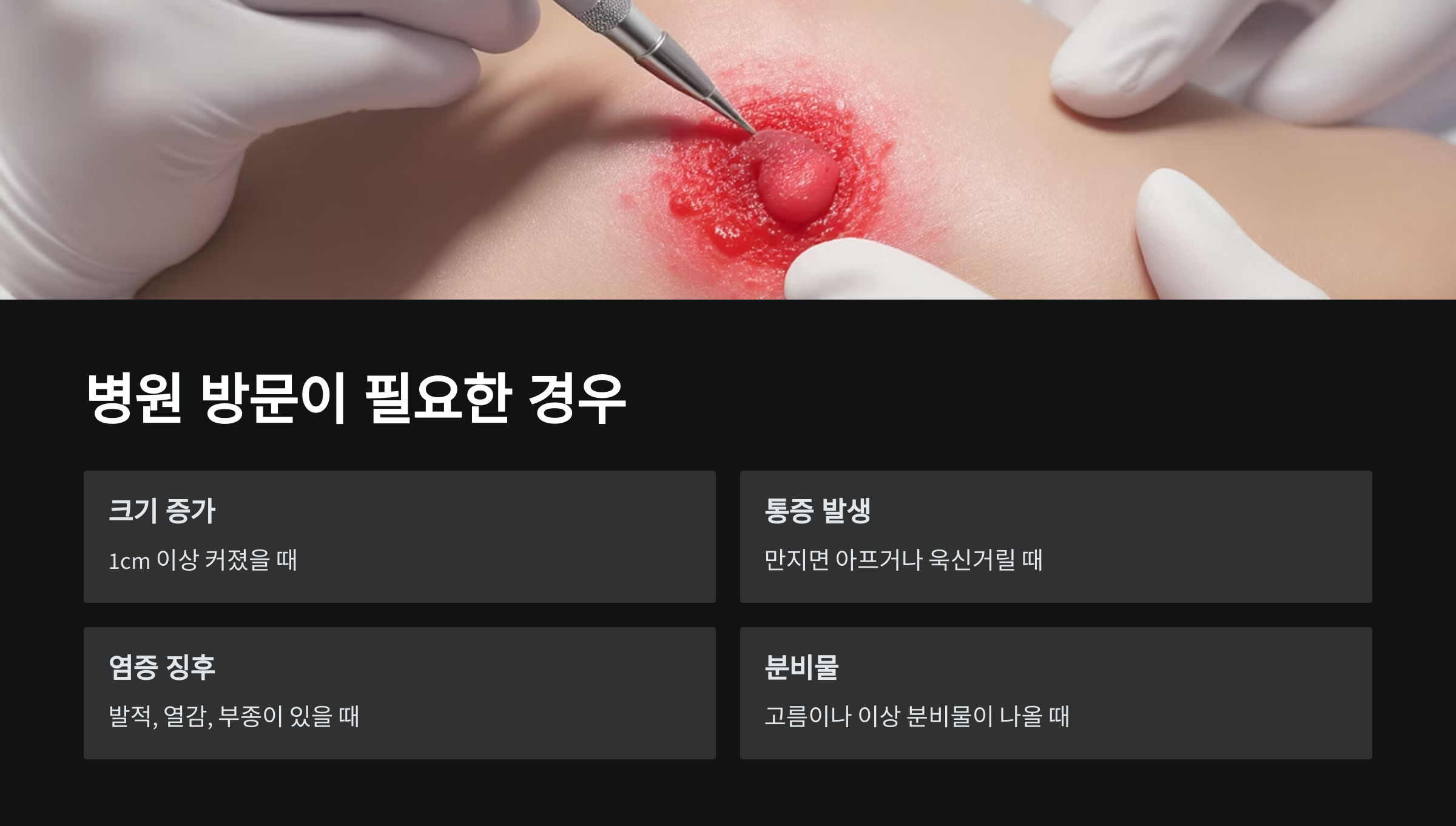 | 급격한 크기 증가 | 높음 | 즉시 병원 방문 |